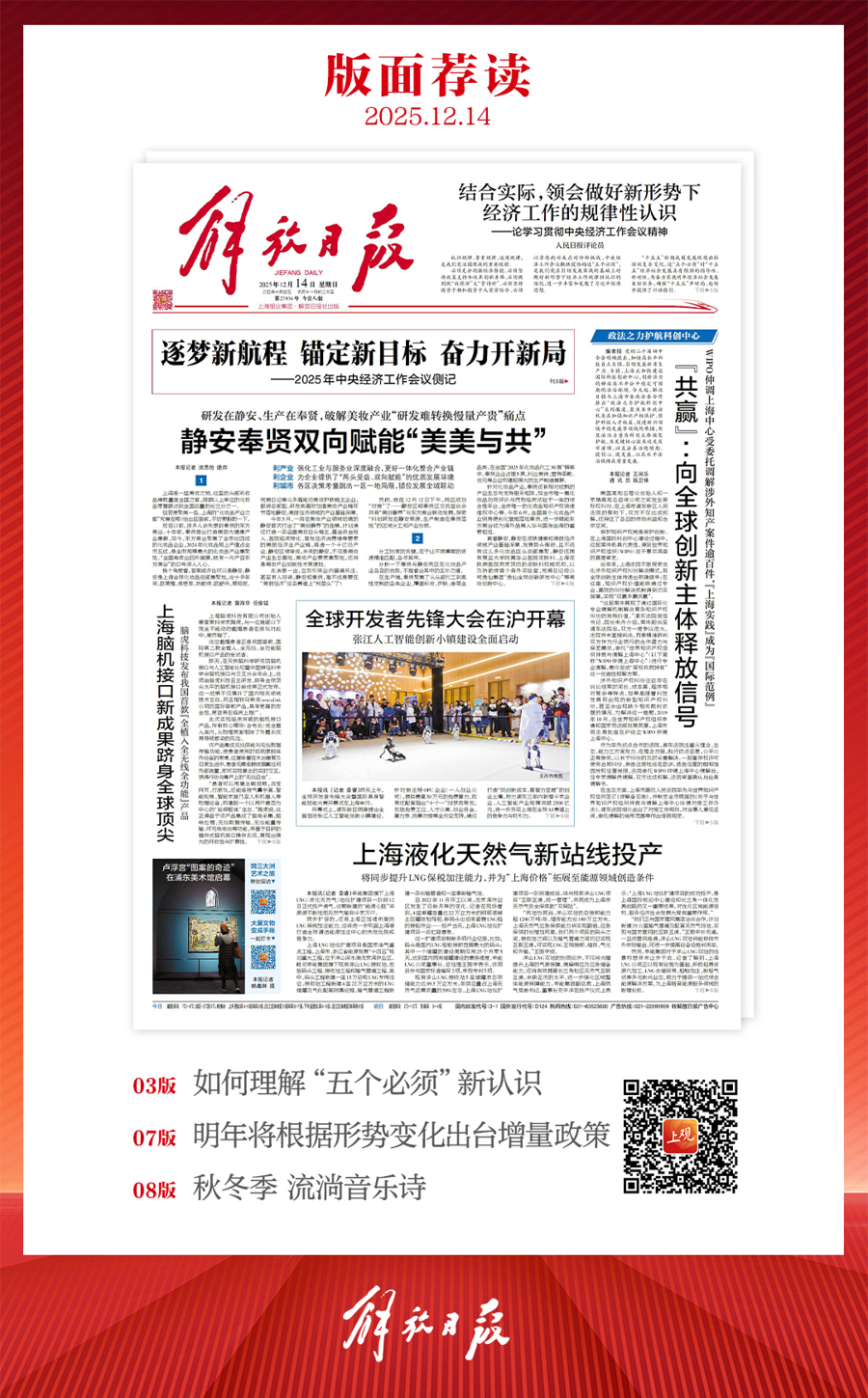早上好!上观新闻『早读』来啦!2025年12月14日 星期日 农历十月廿五上海晴到多云,1~8℃