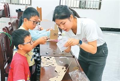 正值寒假,我和广西大学支教团的同学们把课堂搬到了百色市那坡县德合村。村里的活动室热闹起来:孩子们围坐在木桌旁,好奇地打量桌上的彩线和布料。我从一个小小的“绣球”讲起,讲它在广西各民族生活中的寓意。孩子们一针一线地缝着,把民俗传统和民族团结装进手里的绣球。