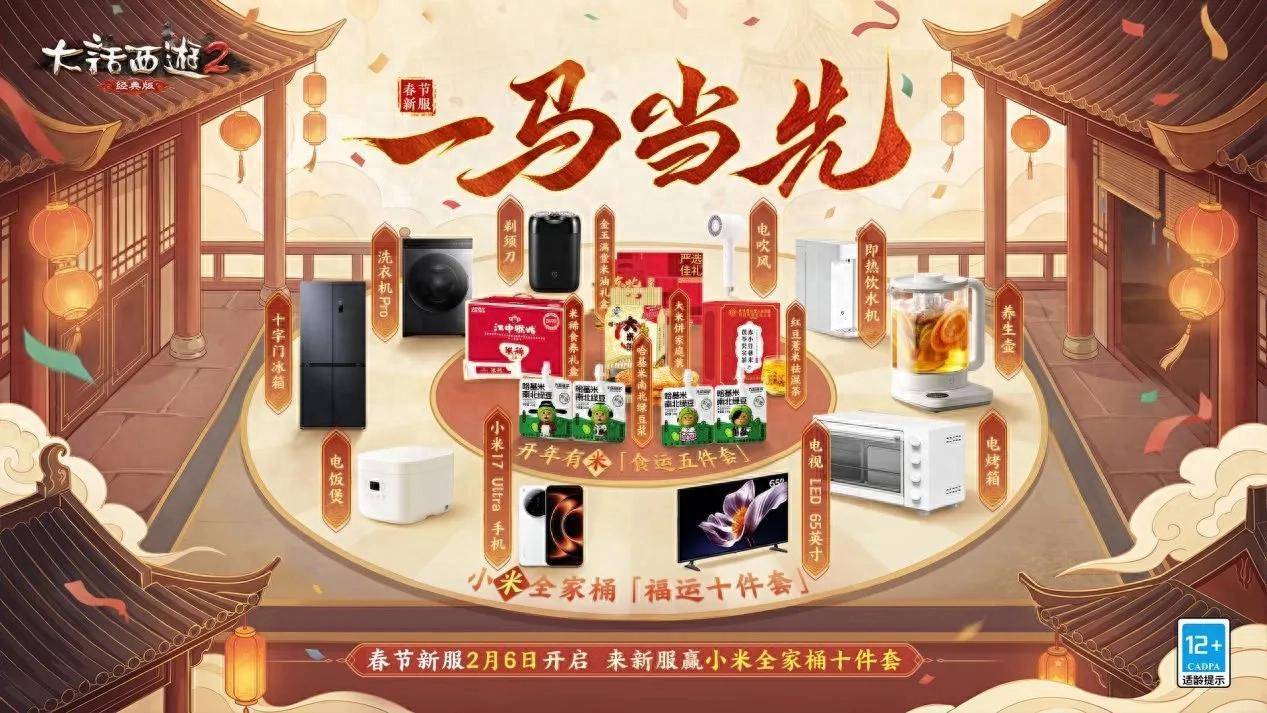 冲级党注意啦!《大话西游2经典版》春节新服【一马当先】已于2月6日中午12:00正式开放。开服就送满成长率新手召唤兽(自带等级和亲密度),参与活动更有机会赢取小米17 Ultra手机、小米电视S Mini LED 65英寸等实物大奖哦!