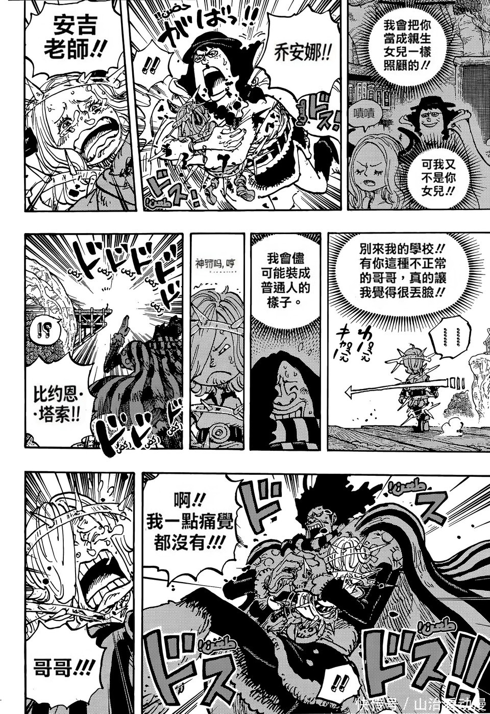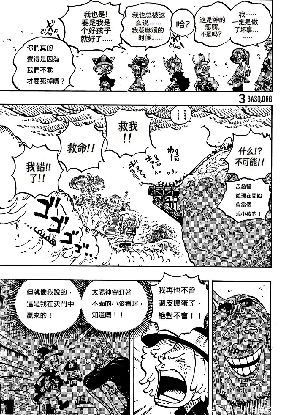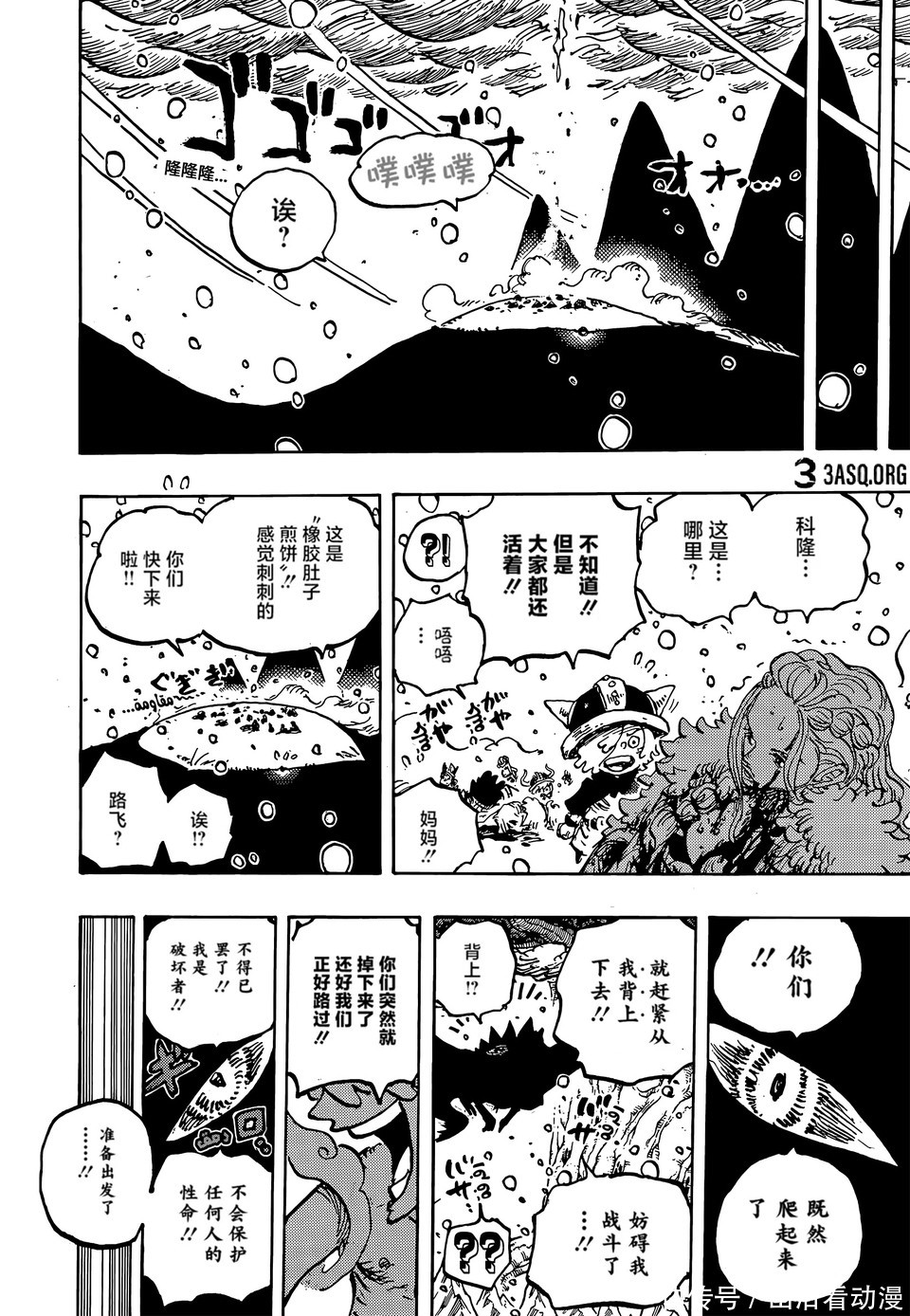 海贼王漫画剧情中,巨人族大战越来越激烈了,神之骑士团已经入侵巨人族,他们绑架了巨人族的孩子,索玛兹圣带着孩子前往港口,他们打算用船只把孩子运送到圣地玛丽乔亚。不过出现了意外,船只被梦魇怪物摧毁,还出现了一个巨大的深坑,孩子有危险了。