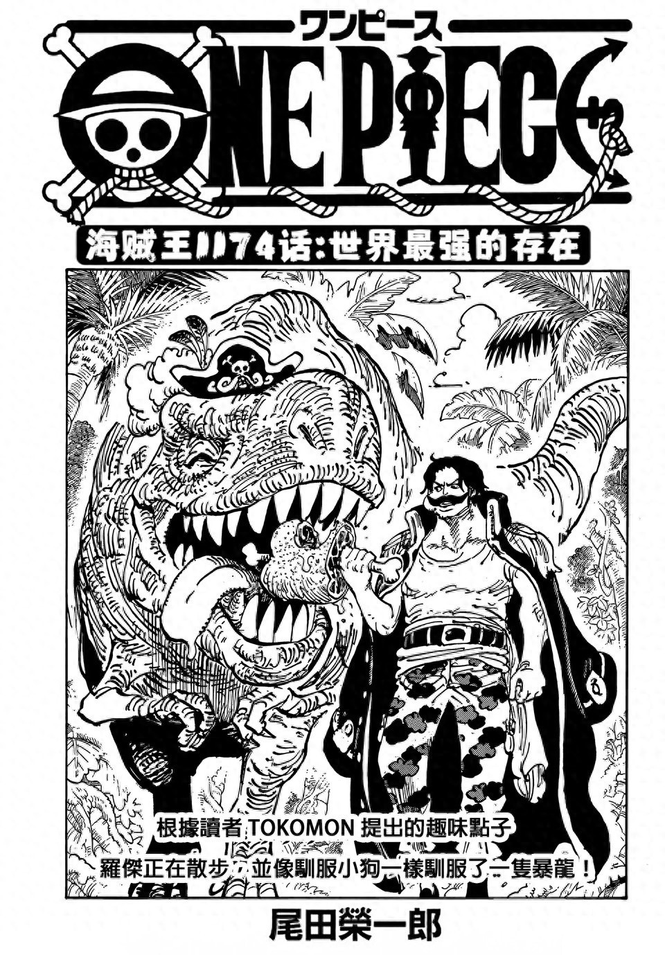 漫画1174话的标题是世界最强的存在,扉页小故事是罗杰驯服了霸王龙,索玛兹圣看到了梦魇怪物摧毁了船只,云海上还出现一个巨大的深坑,他无法停止军子的箭头,这些孩子掉落冥界就会死掉。